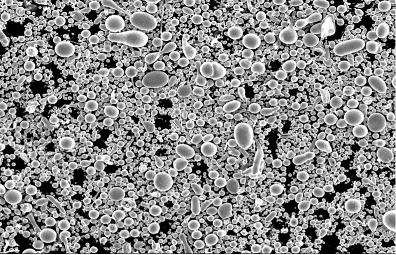 此外,非晶纳米晶粉末在形貌上具有良好球形度,这是因为非晶在急速冷却时收缩速度极快,自然收缩成球形结构。